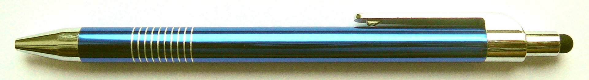 Kovová propiska se stylusem s malým průměrem pro přesný pohyb na displeji vašeho telefonu nebo tabletu. Modrá náplň.