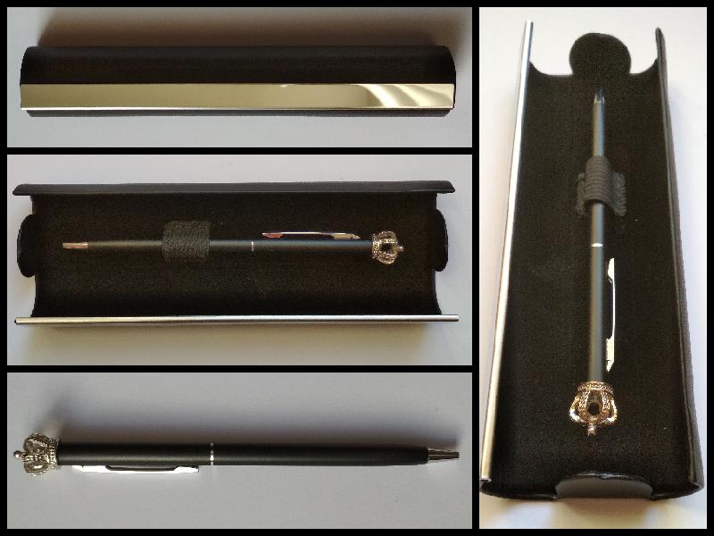 Luxusní propiska s korunkou v koženém pouzdře
